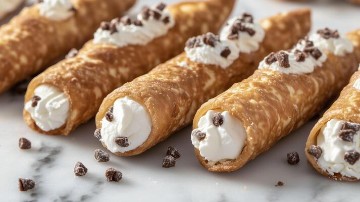 20 Mini Cannoli's. Dipped in Chocolate Chips and dusted with Powdered Sugar